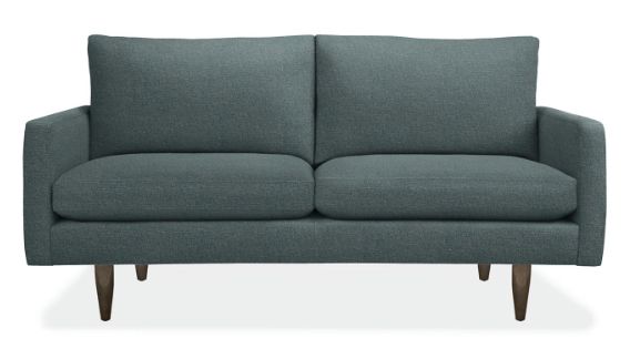 - Choose a sofa or loveseat with thin or low arms and a low back. The slim profile helps your space feel visually light.